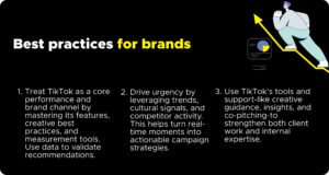 The path to success isn’t linear – it’s iterative. Brands can A/B test hooks, call-to-actions, formats, and lengths weekly. TikTok rewards experimentation over perfection, making agility the ultimate performance asset.